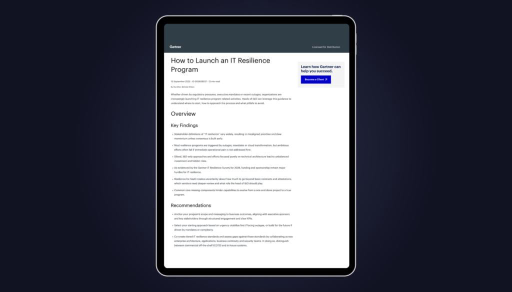 Launch and scale your IT resilience program with practical, step-by-step guidance. Learn how to align stakeholders, set standards, secure funding, and build a sustainable program.